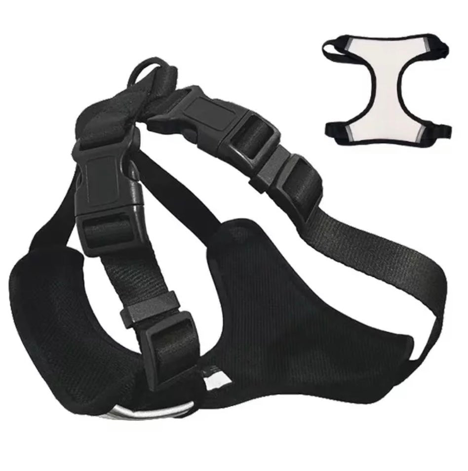 Canvas Dog harness and leashes are crafted from durable black polyester webbing with a blank white area for sublimation printing. Many sizes and styles are available.